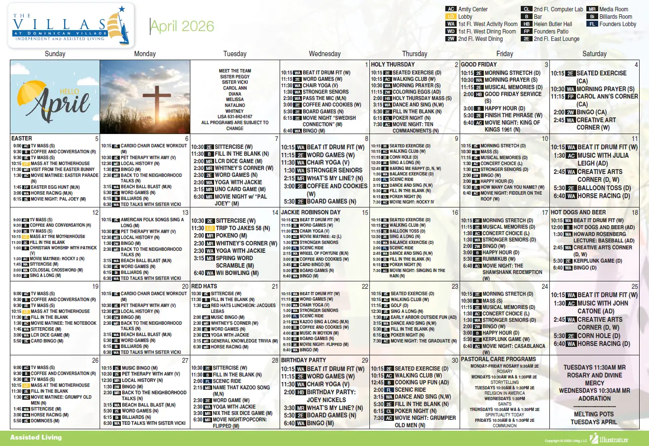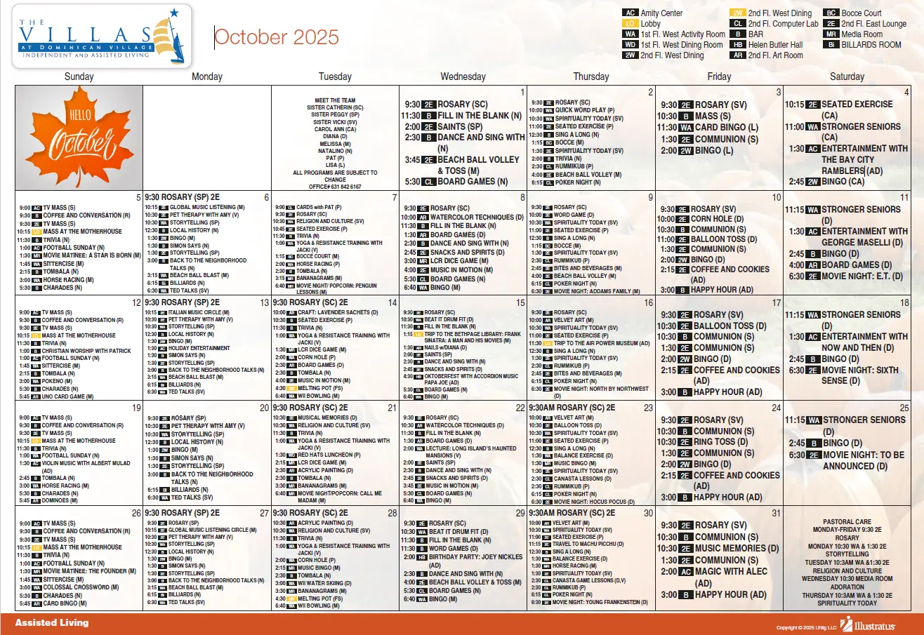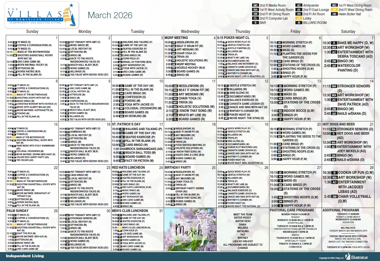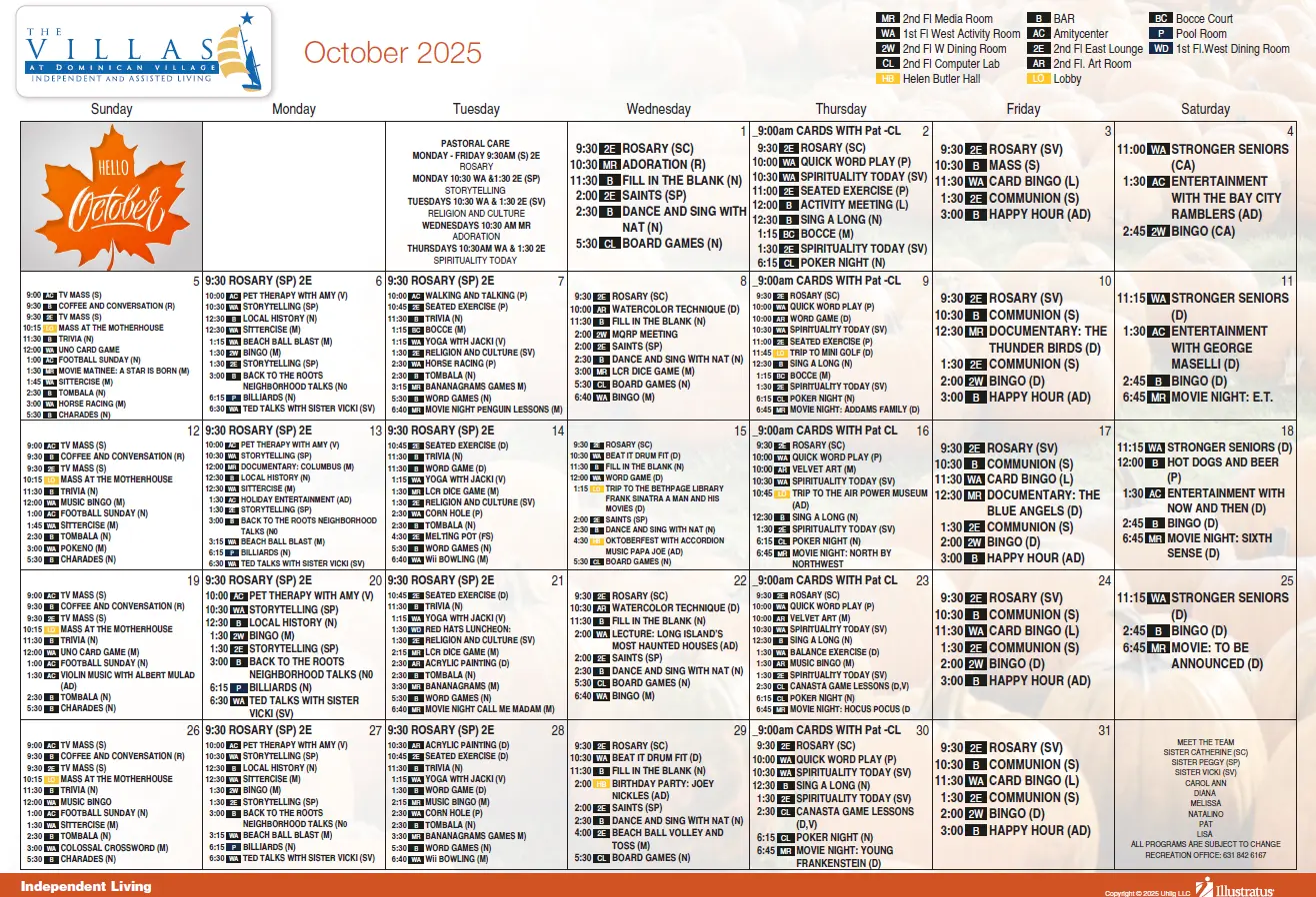 Events & Activities Mark Your Dates: Upcoming Events at The Villas Assisted Living Events & Activities Click PDF logo to download calendar Independent Living Events & Activities Click PDF logo to download calendar